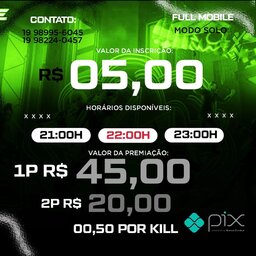 AQUI TEMOS UM DOS MELHORES APOSTADOS DA CENA, COM O PREMIO DE 40 REAIS PARA PRIMEIRO COLOCADO E PARA O SEGUNDO COLOCADO EPARTICIPAÇÃO GRATIS (PARTICIPAÇÃO GRATIS APENAS NA PRÓXIMA SALA) O VALOR DA INSCRIÇÃO E DE APENAS 8 REAIS POR SQUAD POR ISSO O ME... more