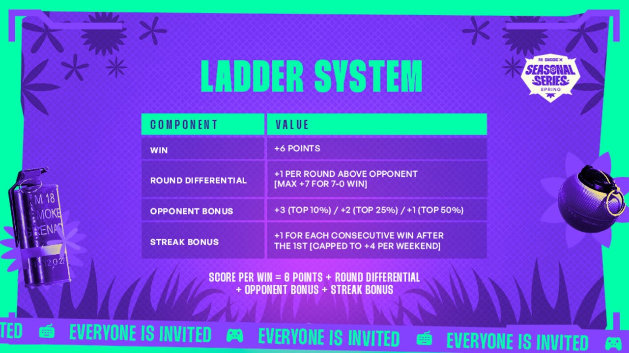 Compete over 4 weeks to qualify to the Contenders League and the Cash Prize Top 8 teams with the 2 best cumulated 5 weekly performances advance, anyone else can play for another shot at a smaller cash prize and R6 credits