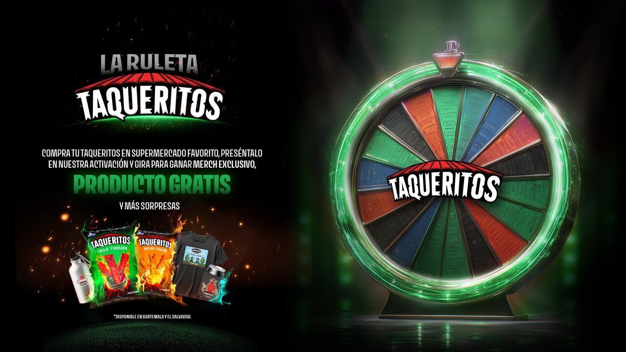 Encuéntrala en los principales supermercados y gira para ganar premios al instante.Solo tienes que comprar tus Taqueritos, mostrar tu factura y poner a prueba tu suerte. 🎯Podrás llevarte merch gamer exclusiva: camisetas, dedales, lanyards, enfriadores, stickers ¡y hasta producto gratis! 😎🎮 ¡Entre más giras, más ganas con Taqueritos!